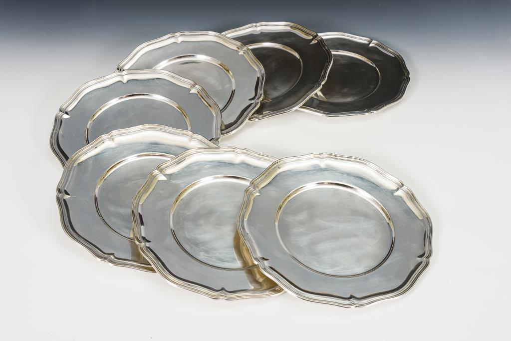 7 silberne Platzteller