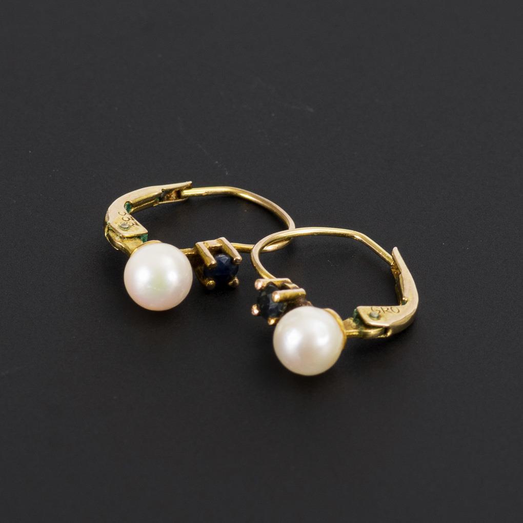 Ohrhängerpaar mit Zuchtperle und Saphir.