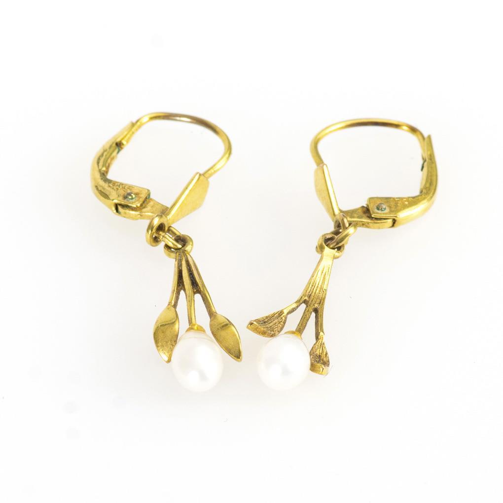 Stilisierte Blumenabhängung mit kleiner Zuchtperle, an Federbügel.