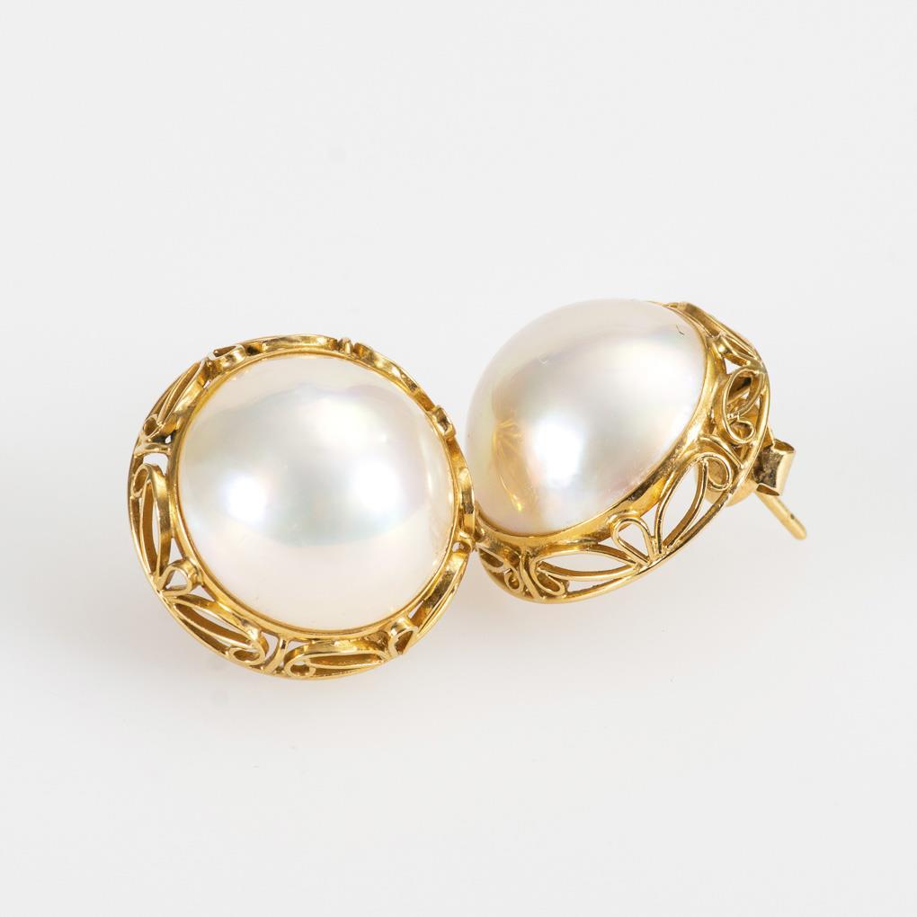 Ohrsteckerpaar mit Mabézuchtschalenperlen.