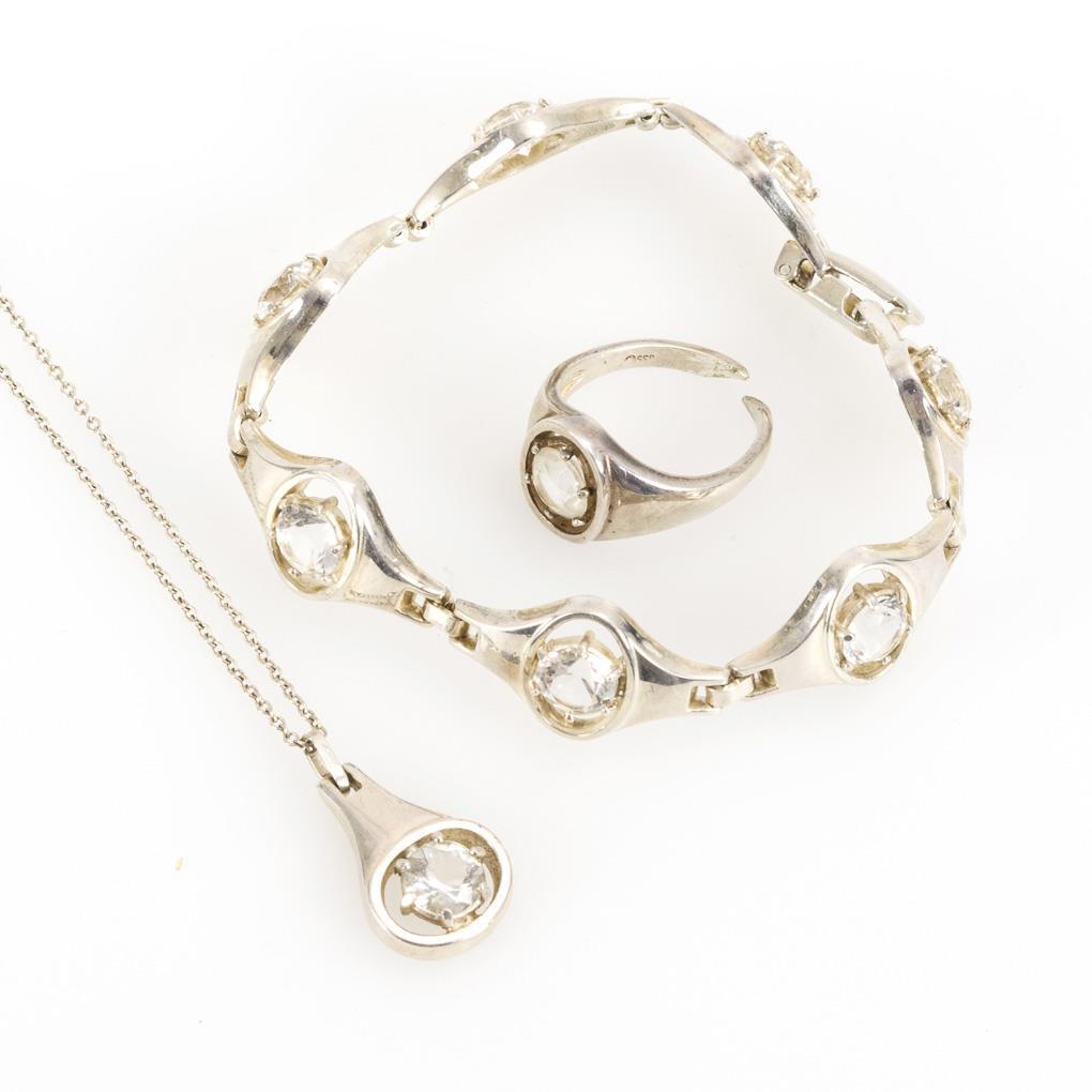 Silber 835 gestempelt. Anhänger 2,3 x 1,3 cm. Kette L 36 cm Armband 18,5 x 1,5 cm. Ringgröße 56. 4,7/23,8/5,5 g.