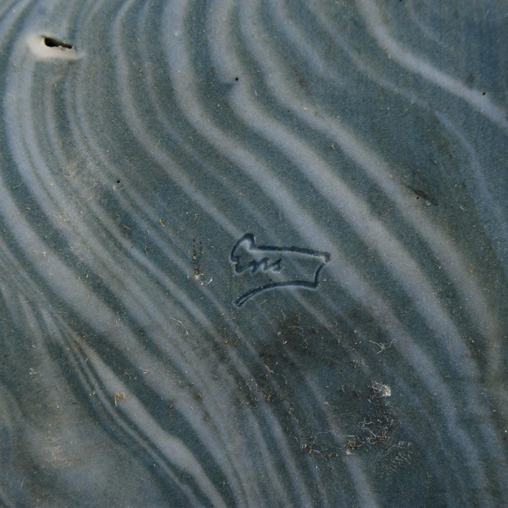 In der Masse gefärbtes, marmoriertes Porzellan, farb- und goldstaffiert. H 16,5 cm, L 23 cm.