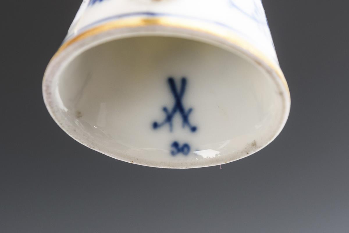 Unterglasurblaue Malerei, Goldstaffage. H 9 cm.