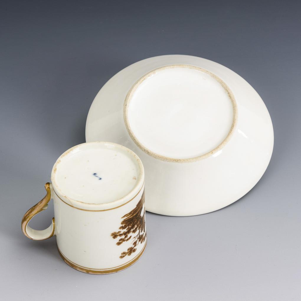 Sepiamalerei, Goldstaffage. H Tasse 6,5 cm, Ø ergänzte Untertasse 13,5 cm.