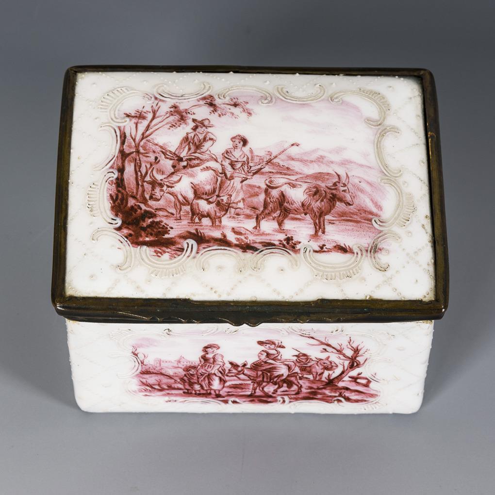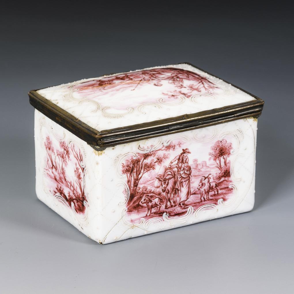 Emaildose mit Purpurmalerei. Wohl England.