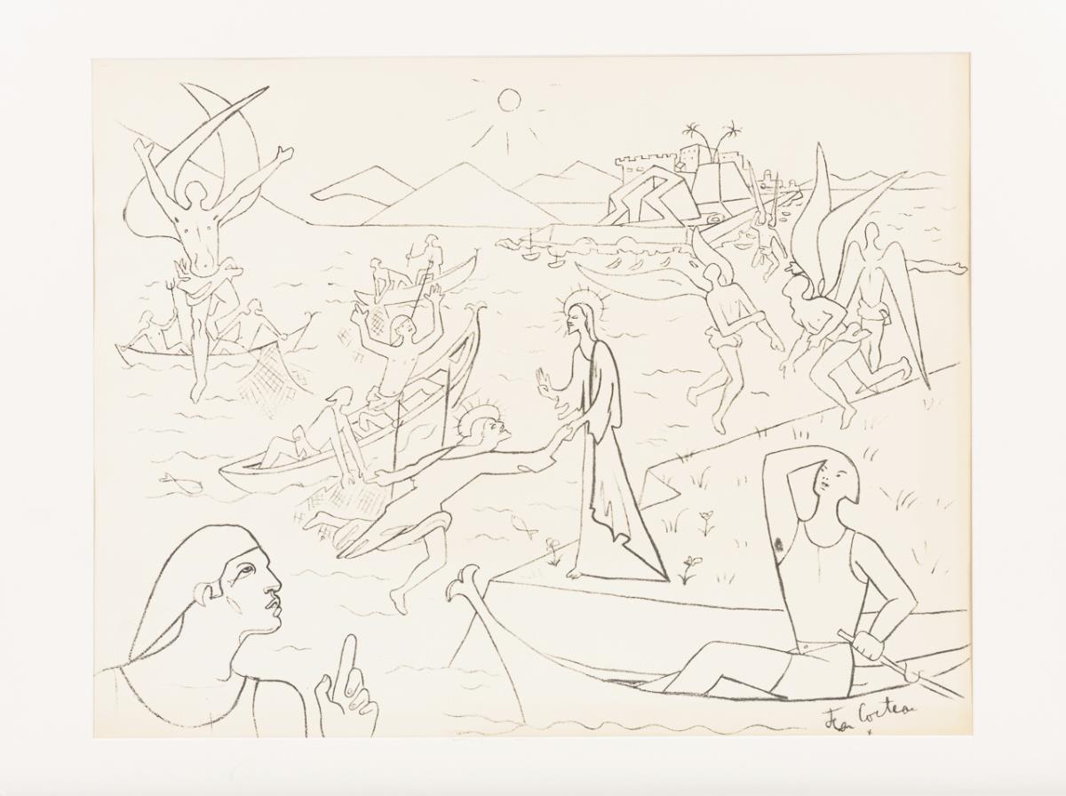 Entwurf für die Wandmalereien der Fischerkapelle in Villefranche-sur-Mer, aus: "Wandmalereien von Villefranche und Menton", Mourlot, Paris 1956. Rand mit leichtem Lichtschaden.