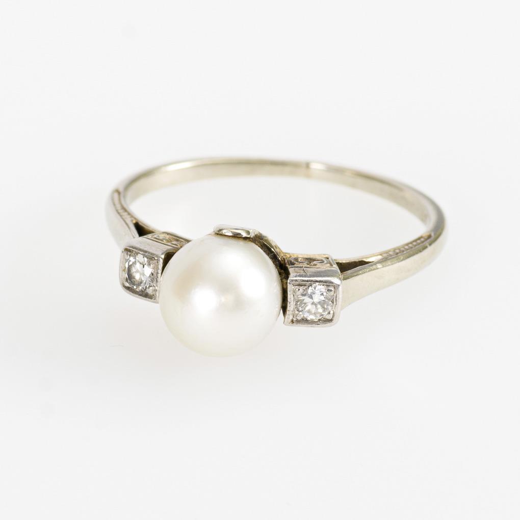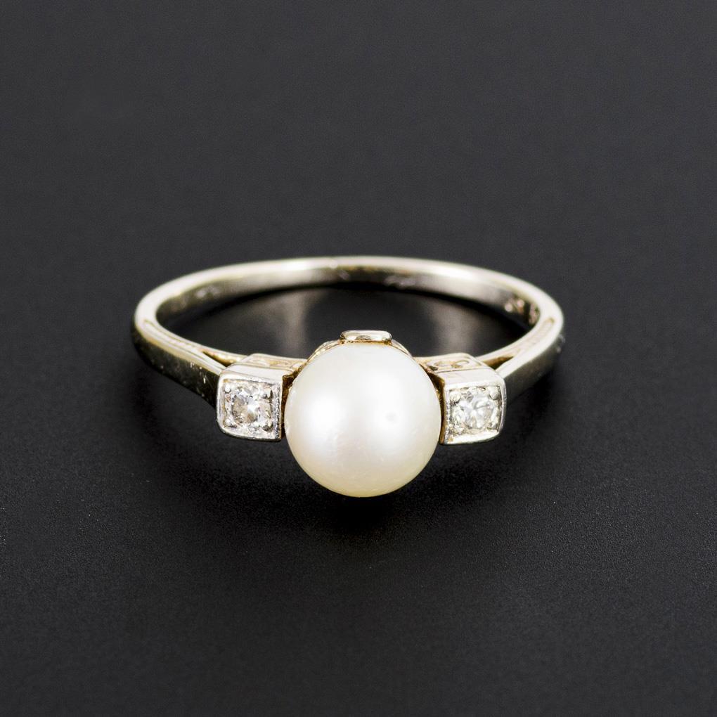 Zuchtperle und 2 kleine Brillanten zwischen schmaler Schiene.