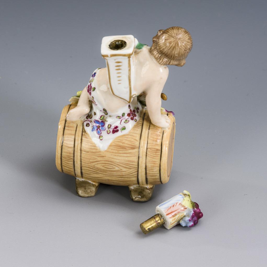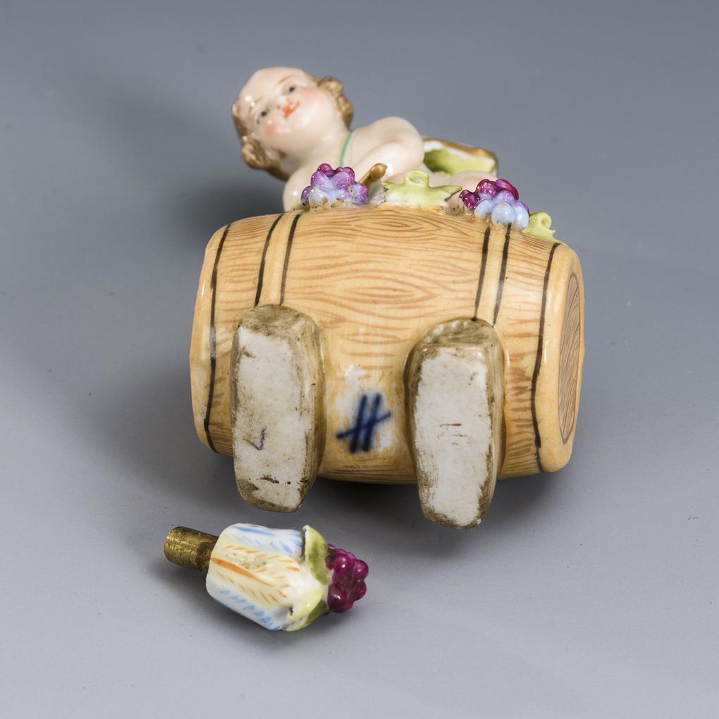 Flakon mit Putto auf Weinfass. Sitzendorf.