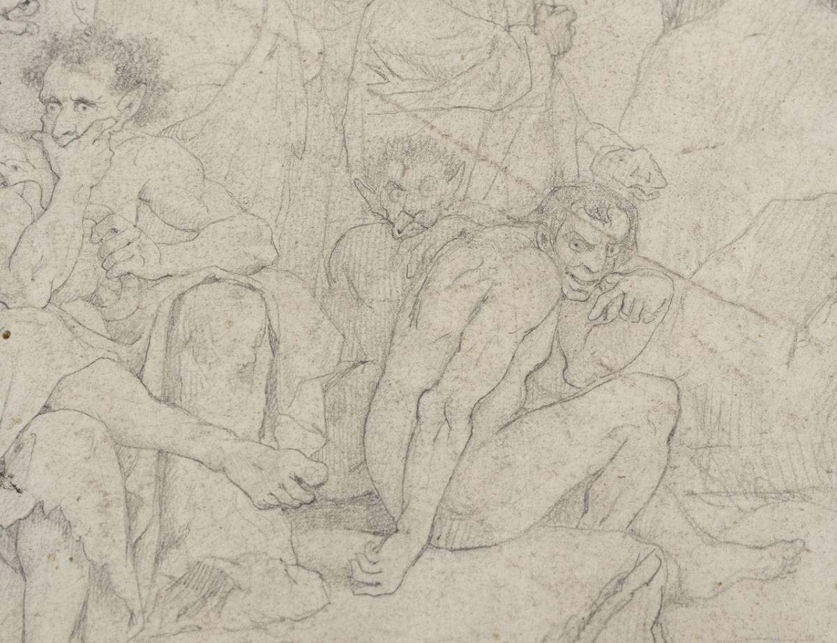 Darstellung der Hölle. Faltspuren, griffspurig, etwas fleckig, verso Kohlespuren und bezeichnet "Nr. 6 - 4", "Heinrich Friedrich Füger", "Friedr. Heinr. Füger um 1780".