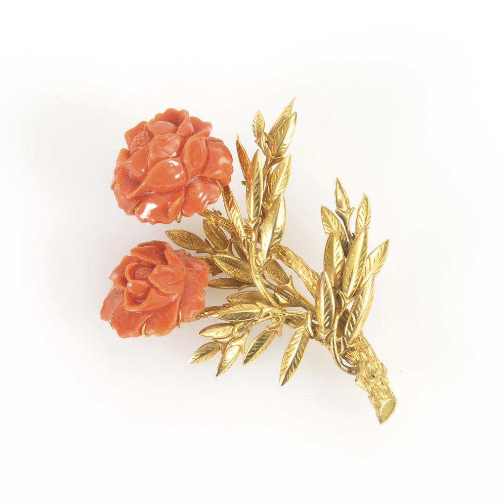 Plastischer Zweig mit geschnittenen Korallenblüten.