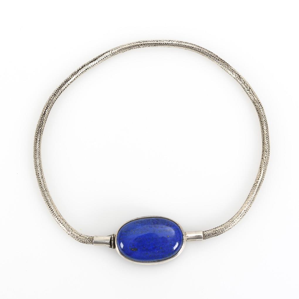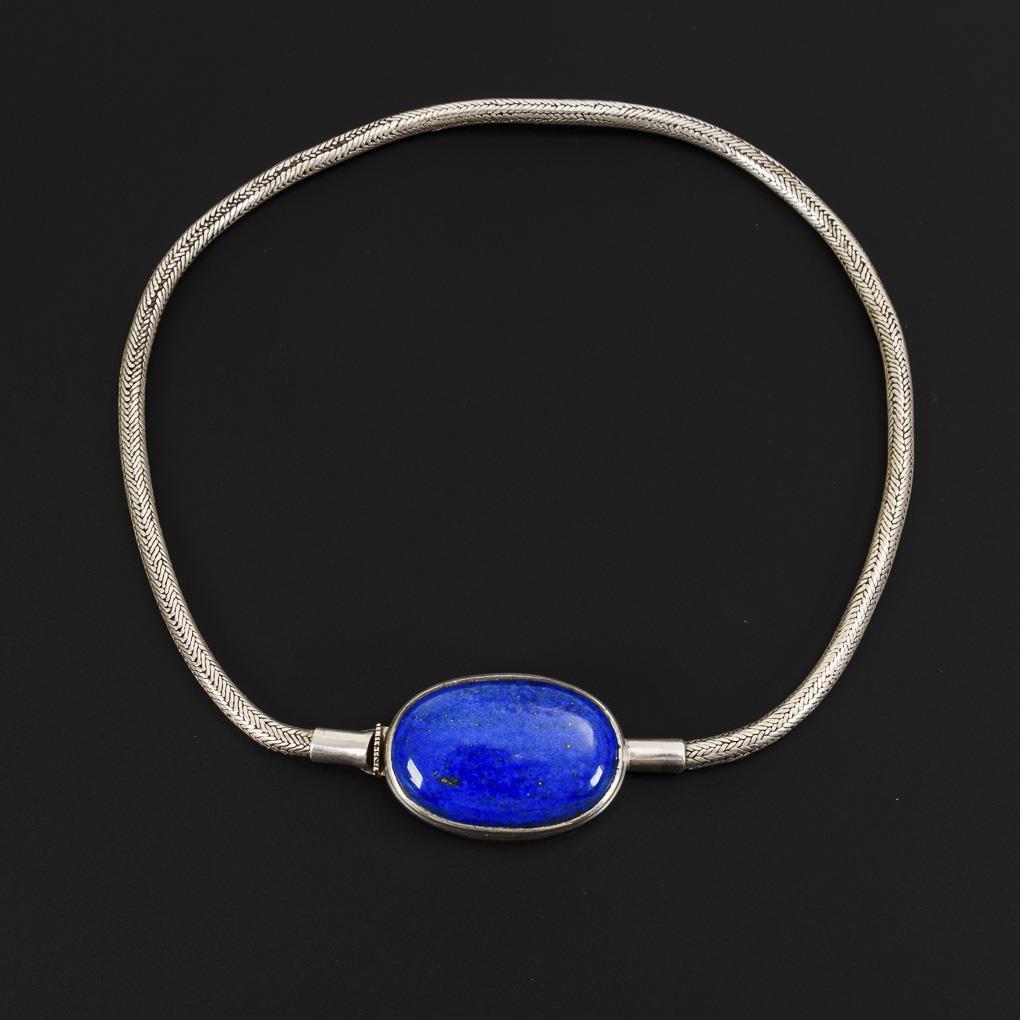 Großes Zierschloss mit Lapislazuli-Einlage an Schlangenkette.