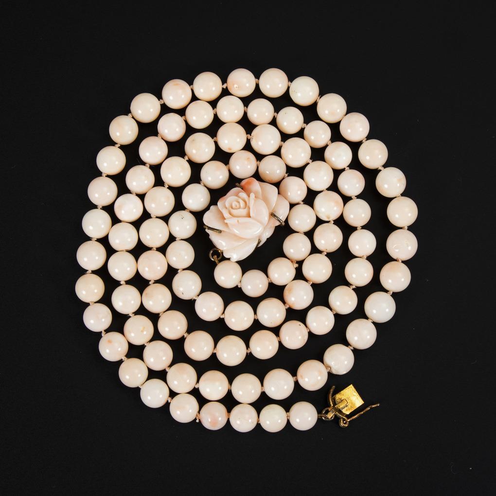 Engelshautkorallenkette mit Zierschließe.