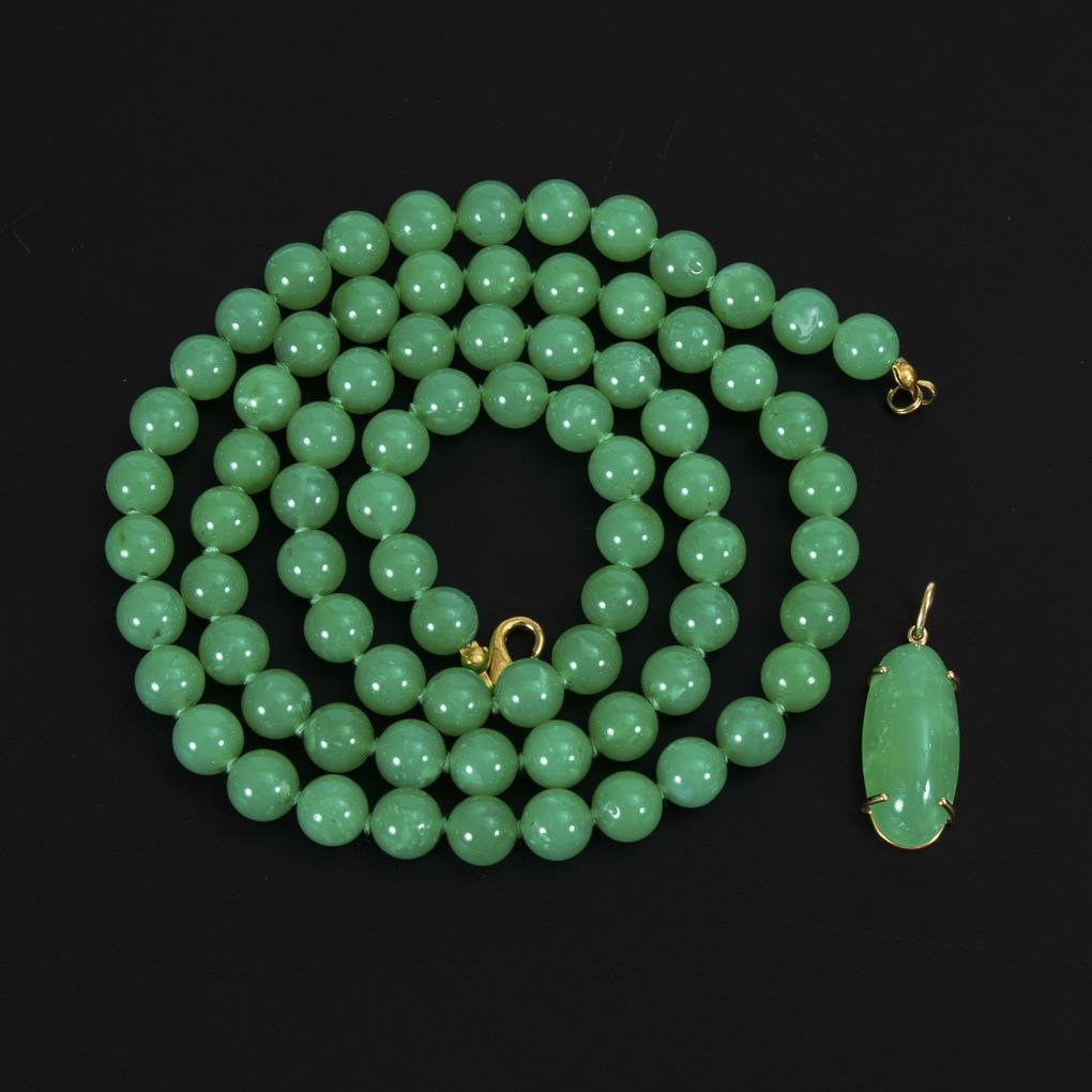 Chrysopraskette und Anhänger.
