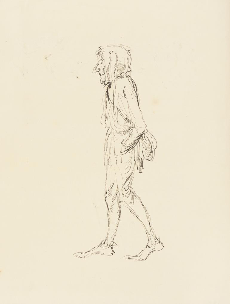 Tuschzeichnung. Bleistiftmonogramm. Etwas stockfleckig, Ecke oben rechts mit kleinem Knick.