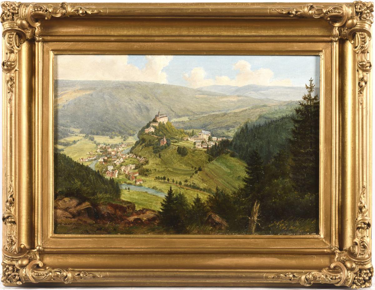 Blick auf den Thüringer Ort mit dem bekannten Schloss an einem sonnigen Tag unter blauem Himmel.