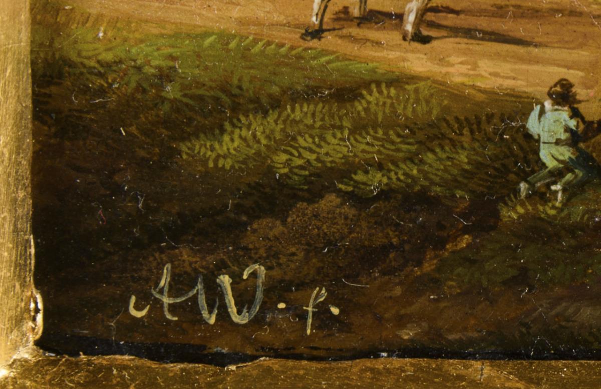 Öl/Eisenblech. Links unten monogrammiert, verso signiert mit Ortsangabe.