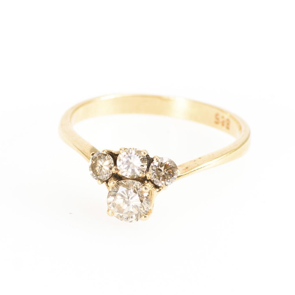 4 champagnerfarbene Brillanten zwischen schmaler Schiene.
