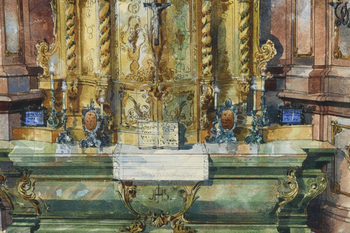 Qualitätvolle Ansicht eines wohl süddeutschen oder österreichischen barocken Altars in hellen, leuchtenden Farben.