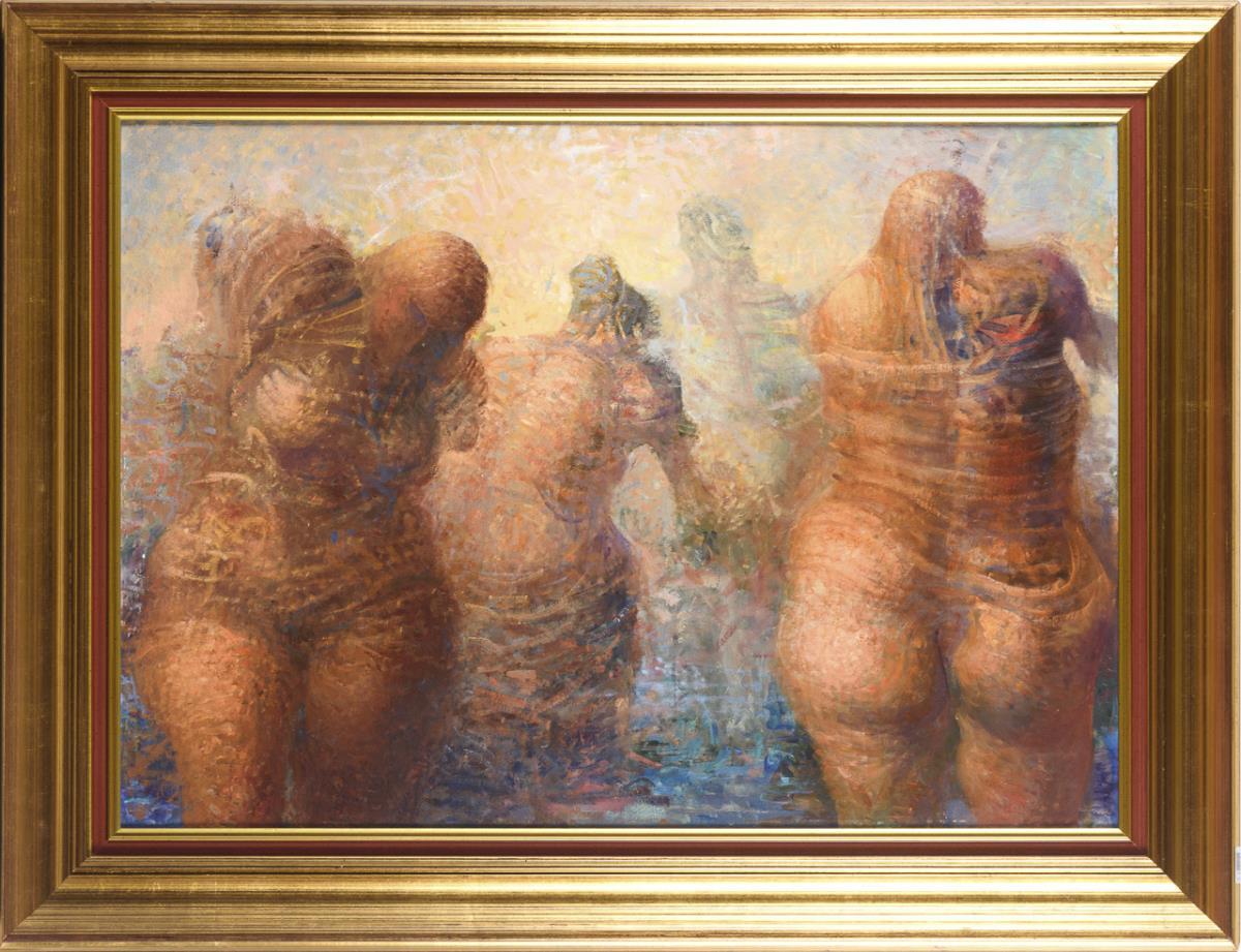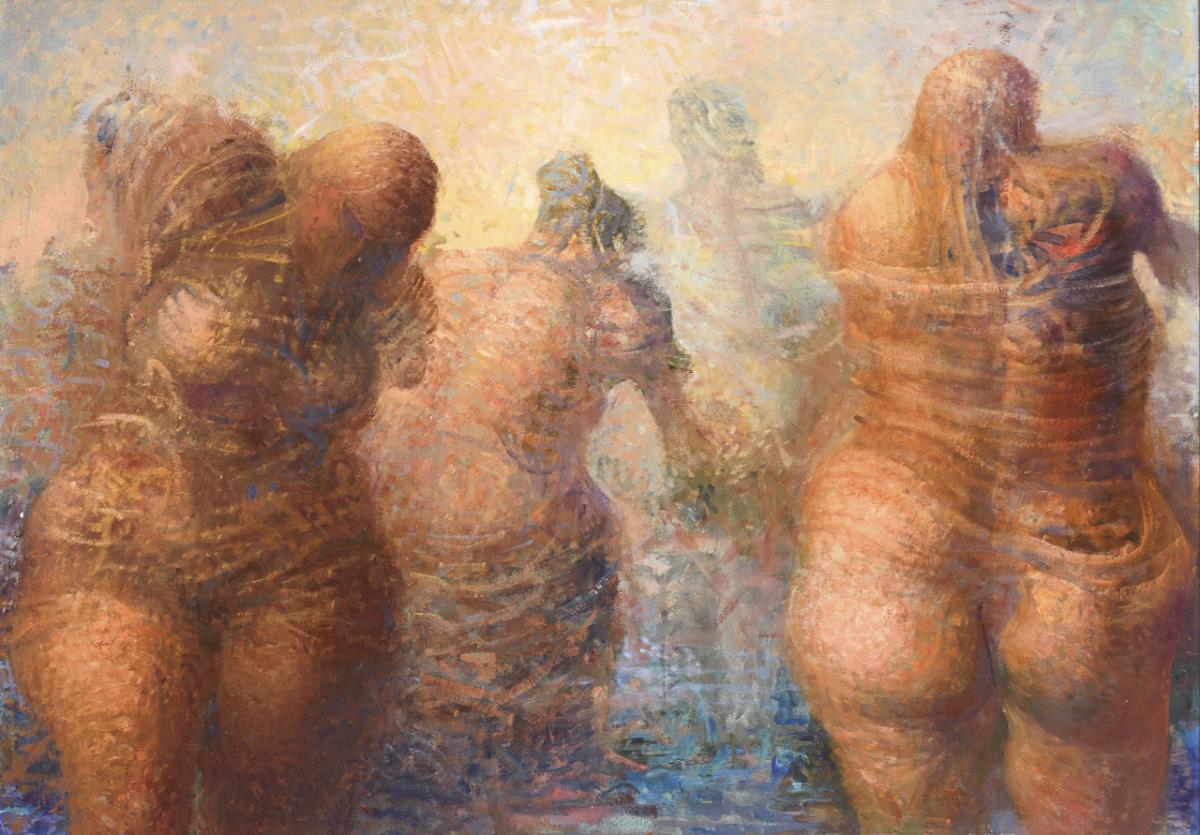 Schemenhaft erkennbare, im Wasser stehende Frauen.
