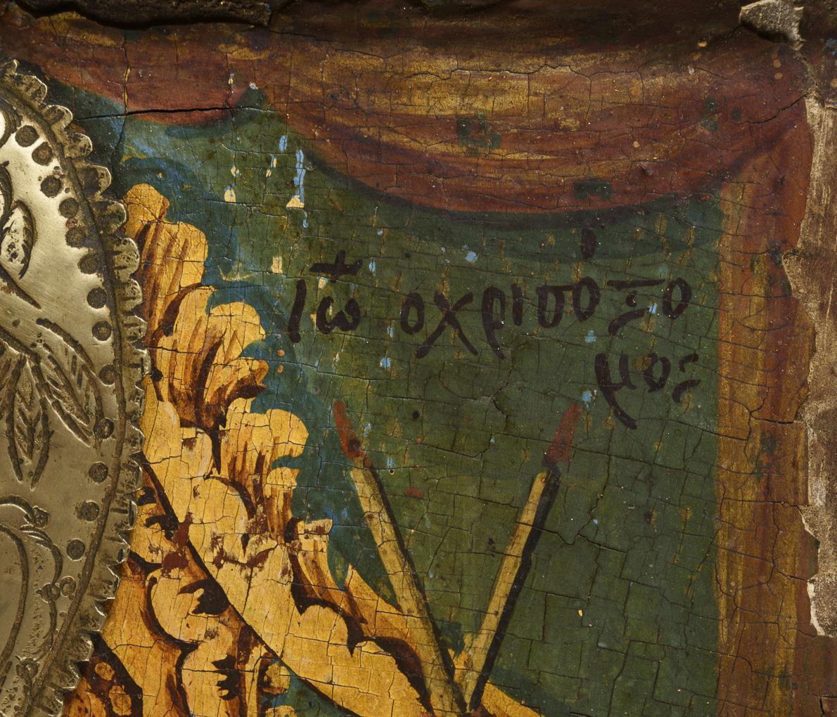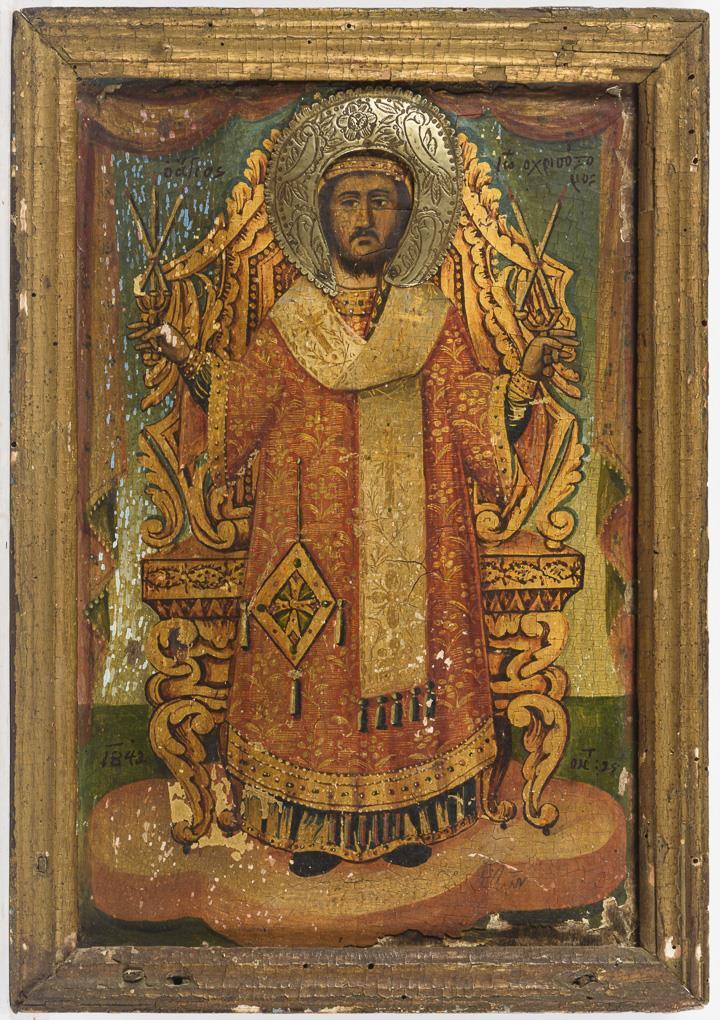 Eitempera/Holz, Metalloklad. Unsigniert. Datiert: 1842.