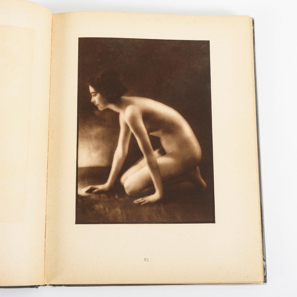 10 Seiten und 120 Blätter mit Aktfotografien in Sepia. Im Leineneinband. Ein Blatt etwas stockfleckig.