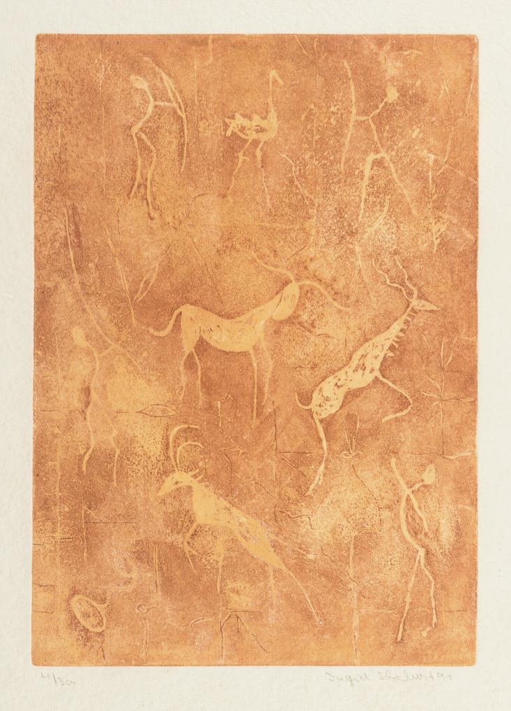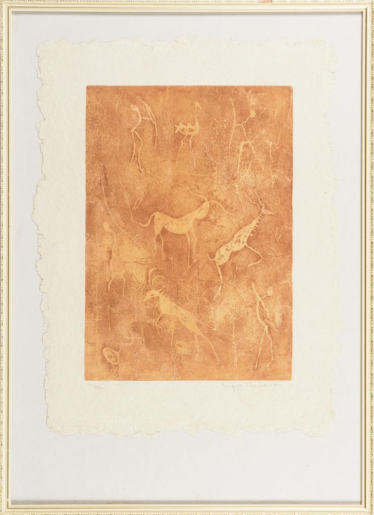 Farbradierung in Sepia auf handgeschöpftem Papier. Bleistiftsignatur. [19]91. Exemplar: 4/30.