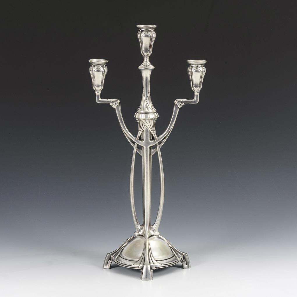 Schlanker, 3-flammiger Leuchter mit Jugendstilrelief. Gebrauchsspuren.