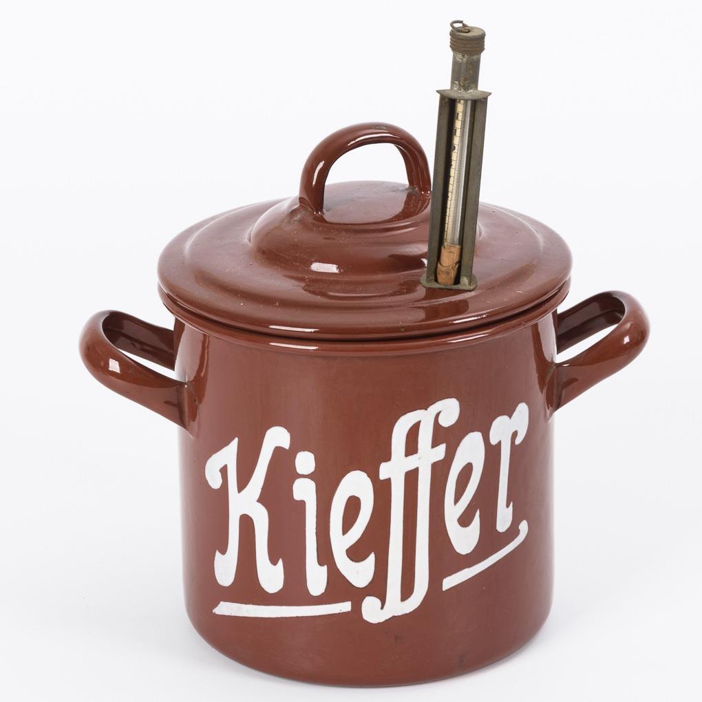 Metall, rotbraun emailliert. H 22 cm, Ø 17,5 cm.