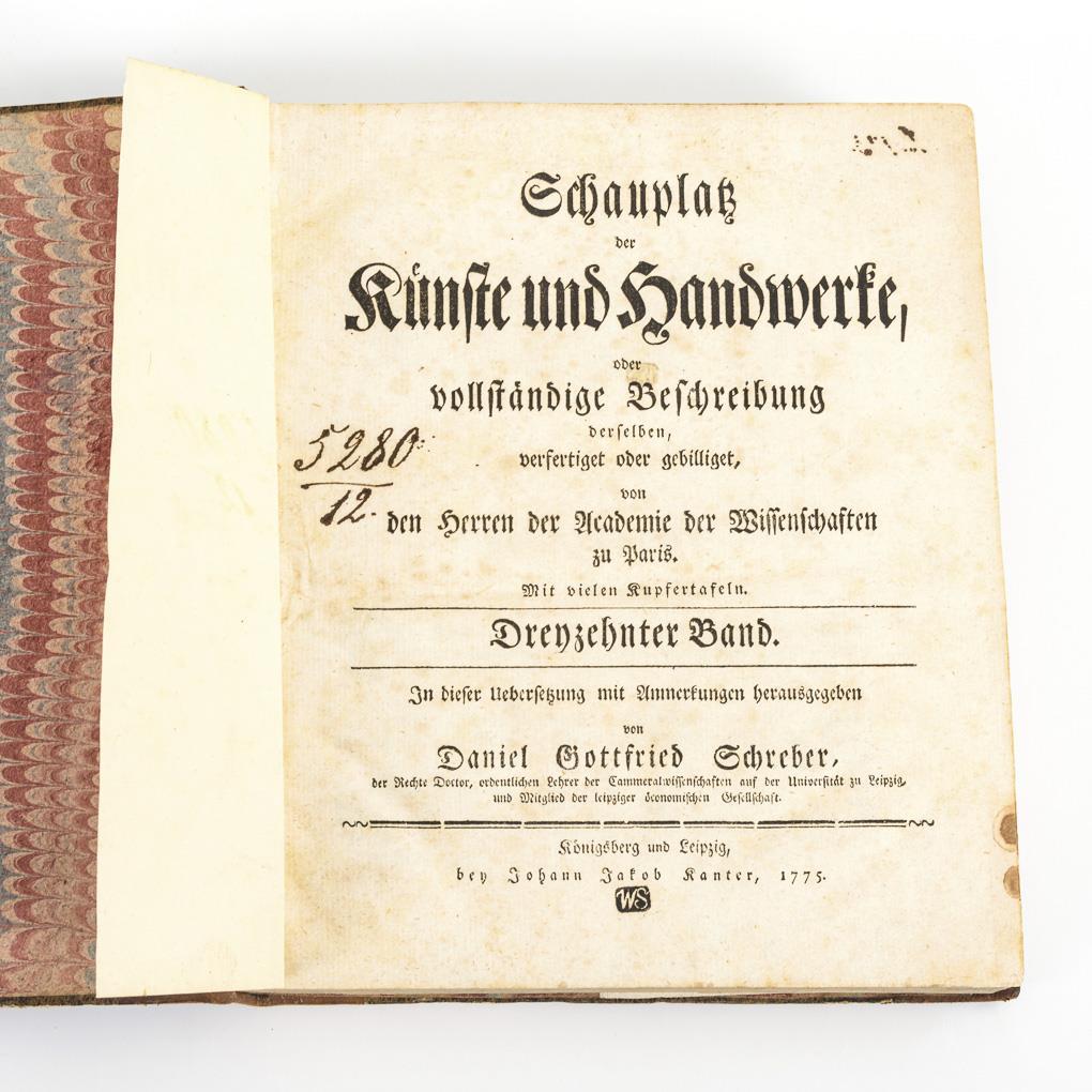 (6), "Von den Fischereyen und Geschichte der Fische, oder derer Thiere , die im Wasser leben" 328 Seiten und 15 Kupferstichtafeln meist mit Darstellung verschiedener Fischereitechniken. /