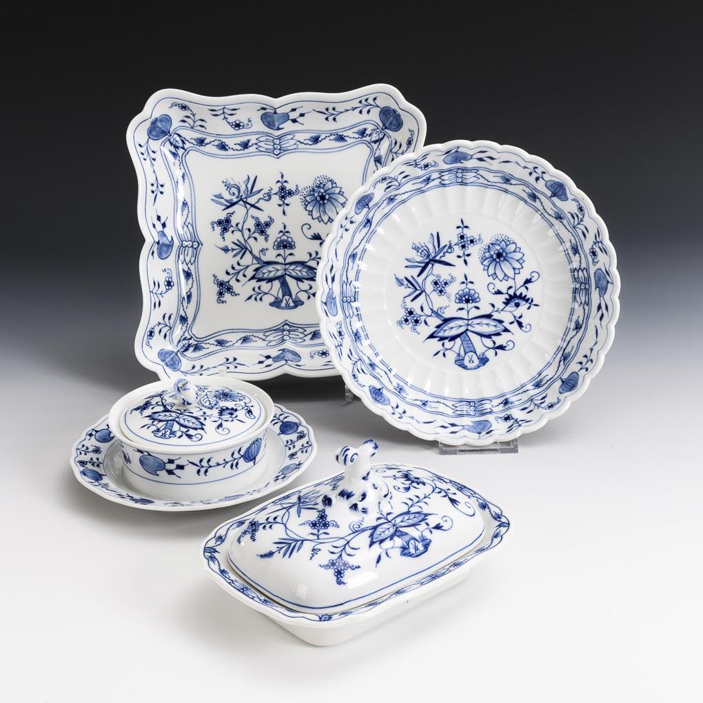 2 Zwiebelmuster-Butterdosen und 2 -Schalen. Meissen.