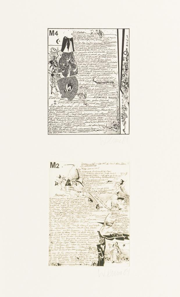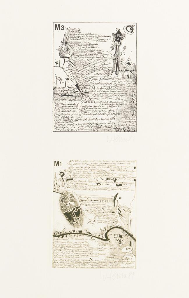 6 Prägedrucke (davon 2x 2 Prägedrucke auf 1 Blatt), 3 (Farb)Lithografien, 4 Radierungen. Je mit Bleistiftsignatur. 1983. Exemplar: 28/30, Edition Vostehlow, Leipzig - 1. Druck.