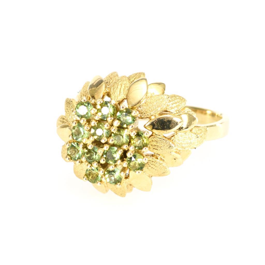 Blätterringkopf mit 13 hellgrünen Steinen. Schmale Schiene.