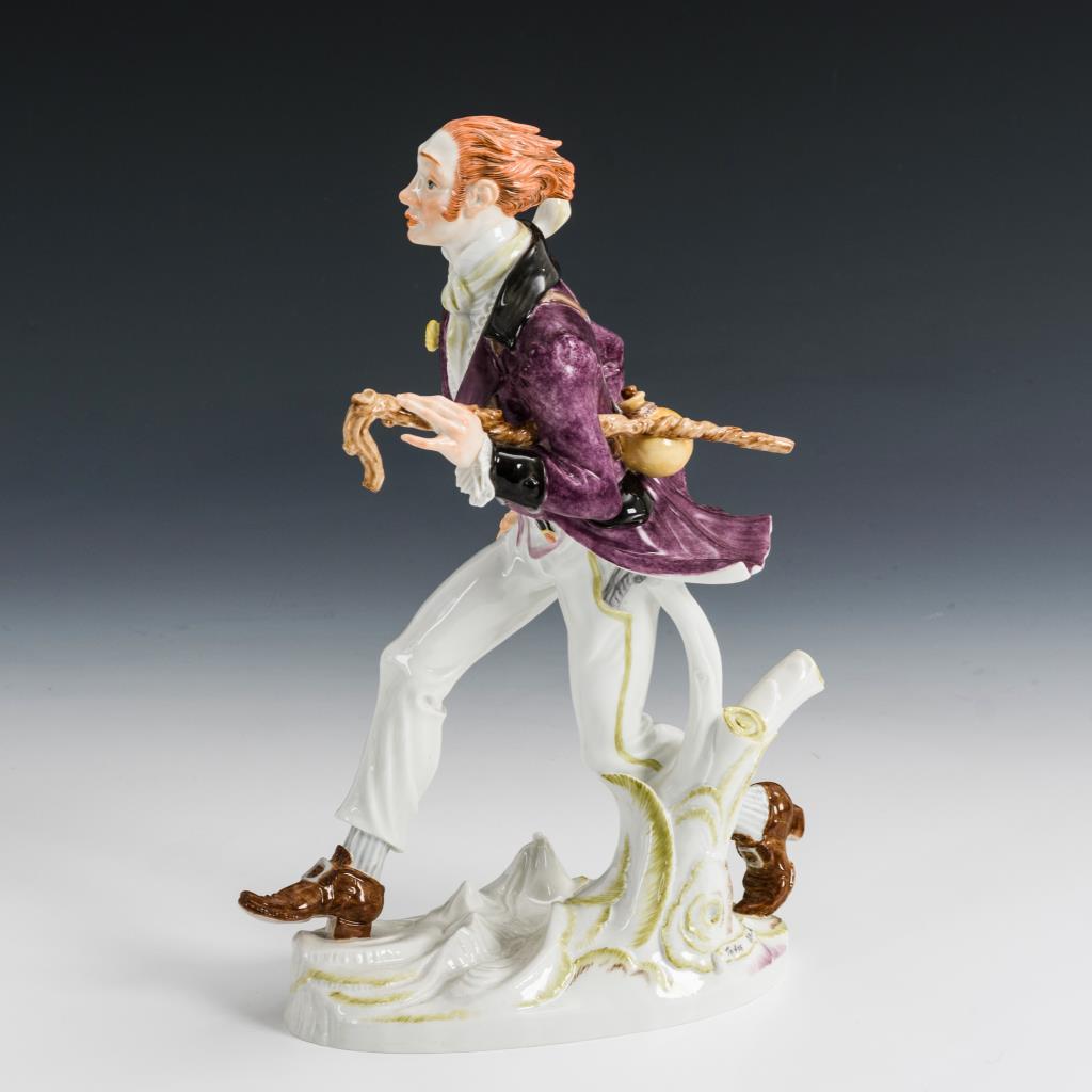 Figur eines über einen Natursockel eilenden jungen Mannes, nach der Hauptfigur in Adelbert von Chamissos (1781–1838) Kunstmärchen "Peter Schlemihls wundersame Geschichte".