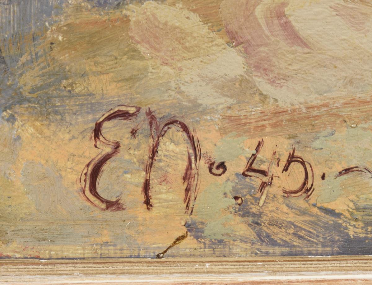 Öl/Holz. Links unten monogrammiert, verso bezeichnet. Datiert: (19)40.