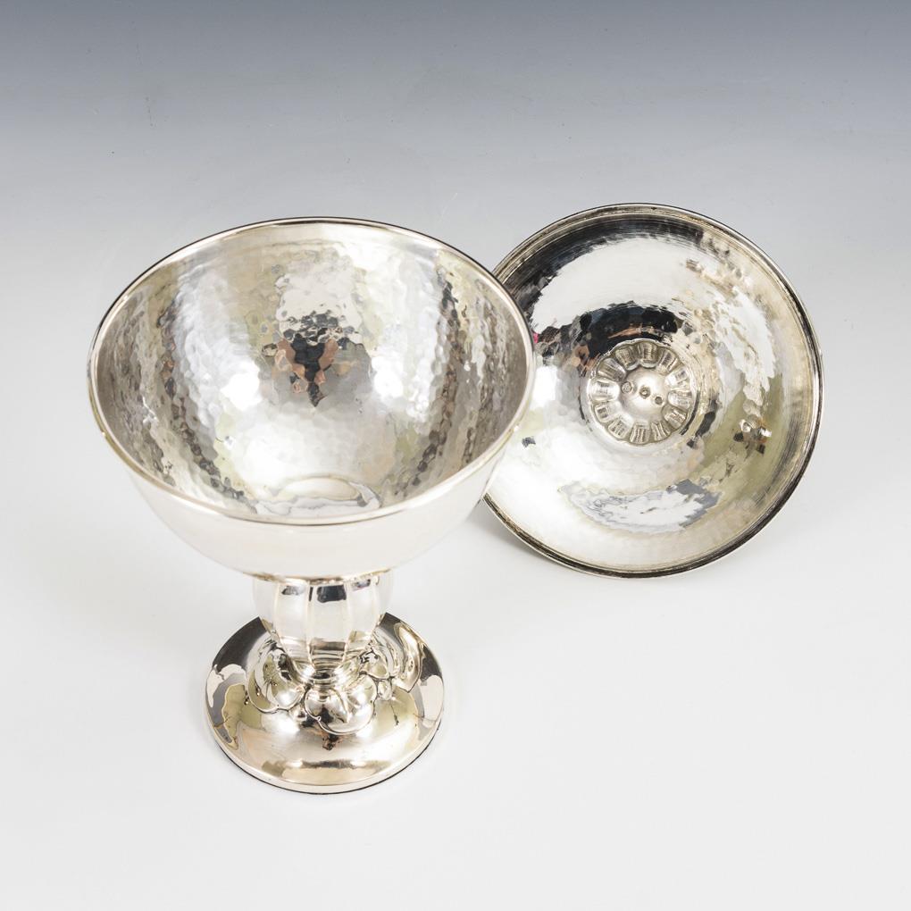 Elegante Fußschale mit Deckel und Ebenholz-Knauf. Knauf etwas gelockert.