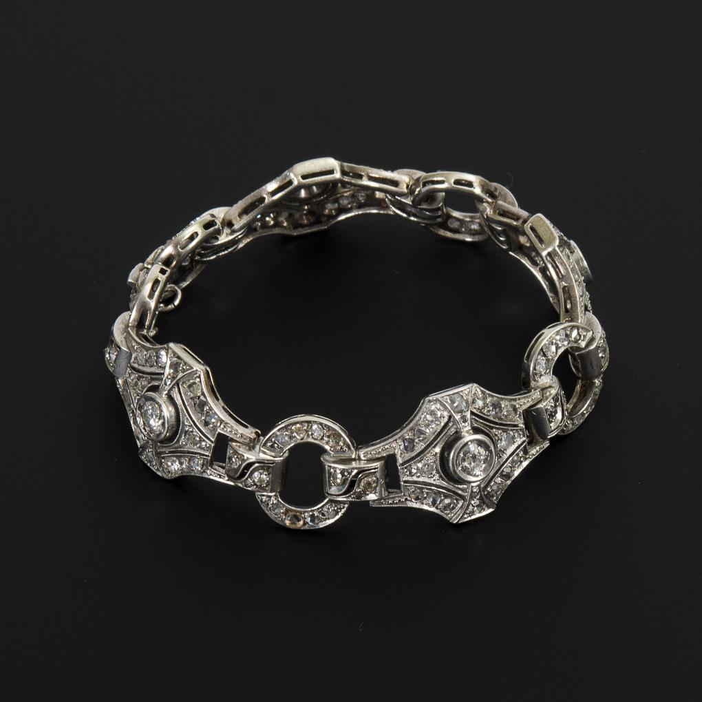 Art-déco-Armband mit Altschliff-Brillanten, Diamanten und Diamantrosen| Nachtrag siehe Text.