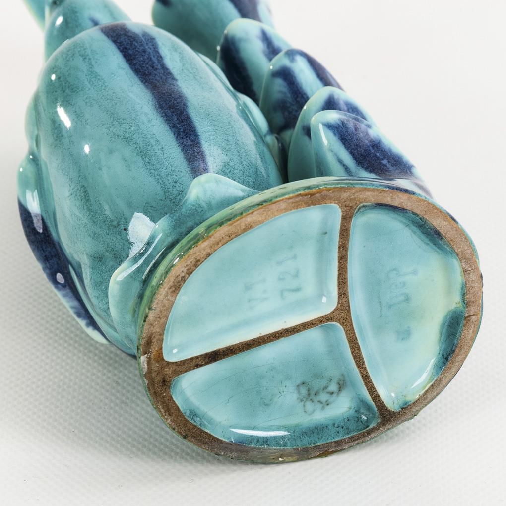 Steingut, türkisblaue Laufglasur. H 17,5 cm.