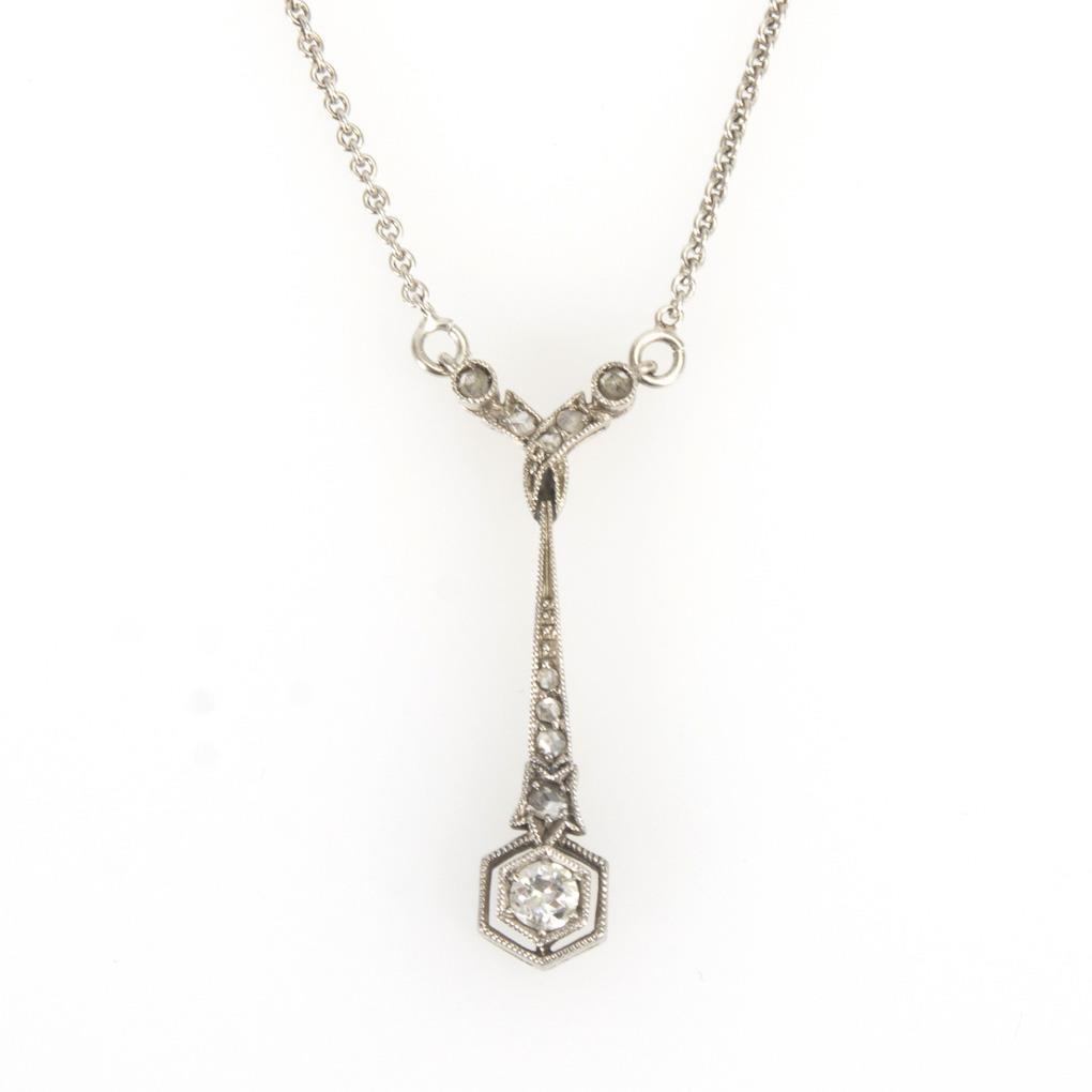 Art-déco-Collier mit Brillant und Diamantrosen.