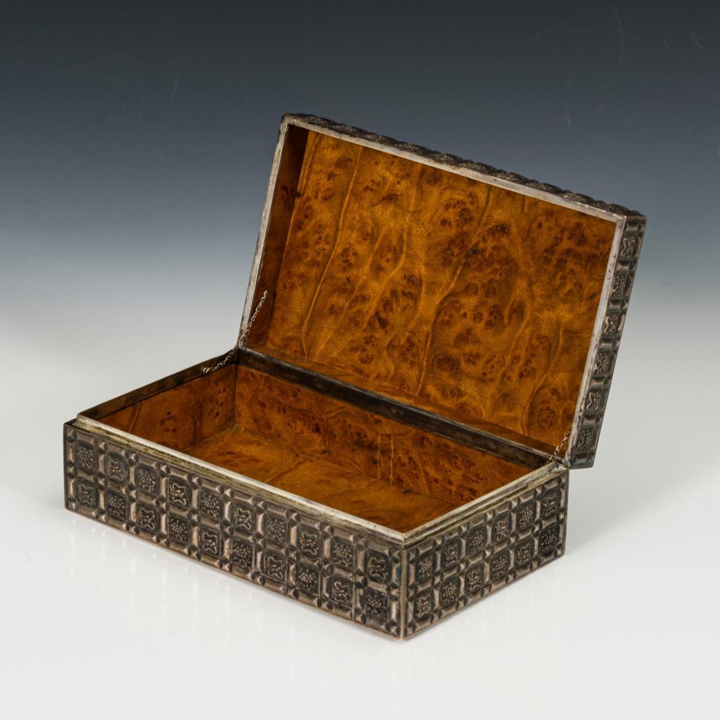 Silber, geprüft.6 x 19 x 11 cm.502 g (mit Holz).