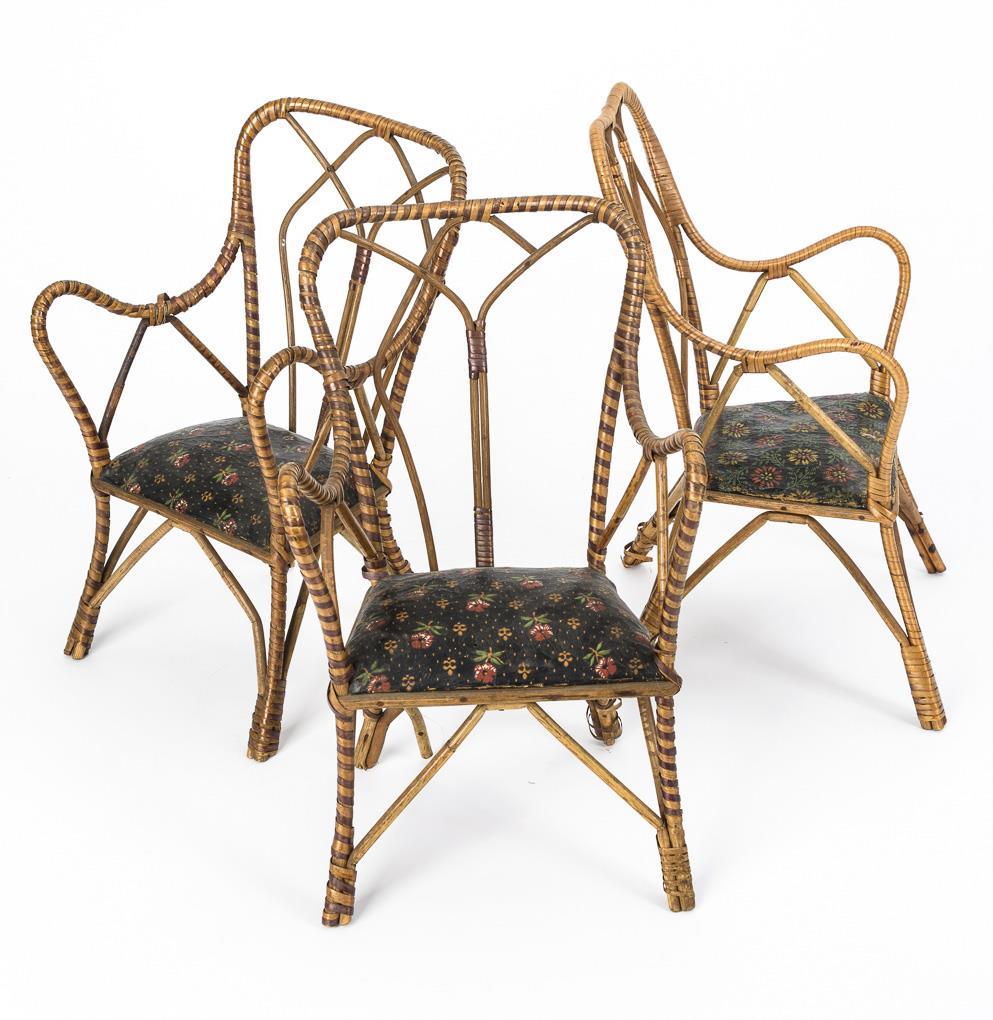 3 Armlehnstühle mit geblümten Sitzpolstern. Altersspuren, kleine Defekte.