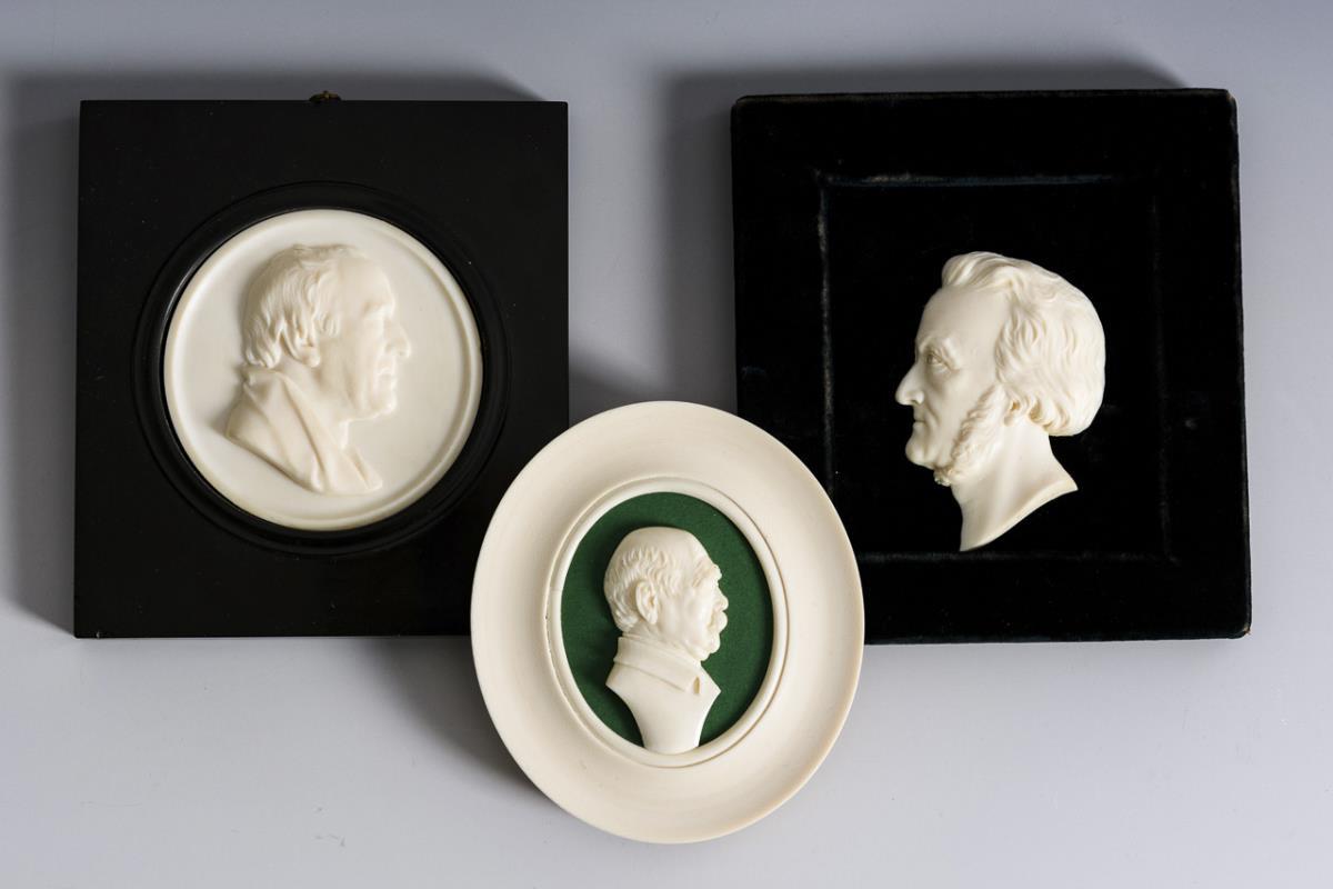 Kopf von Richard Wagner und einem Unbekannten sowie Büste von Bismarck. Rahmen geringe Alters-/Gebrauchsspuren.
