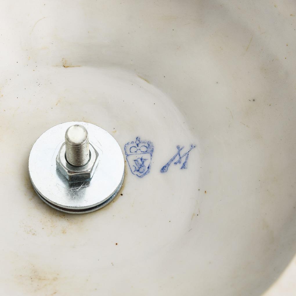 Biskuit-Deckelvase mit Löwenköpfen. Müller.