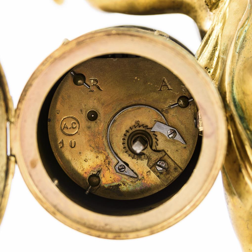 "A.C" geprägtes Gehwerk mit Schlüsselaufzug, läuft. Weißes, profiliertes Emailzifferblatt mit römischen und arabischen Zahlen, Louis Quinze-Zeigern.
