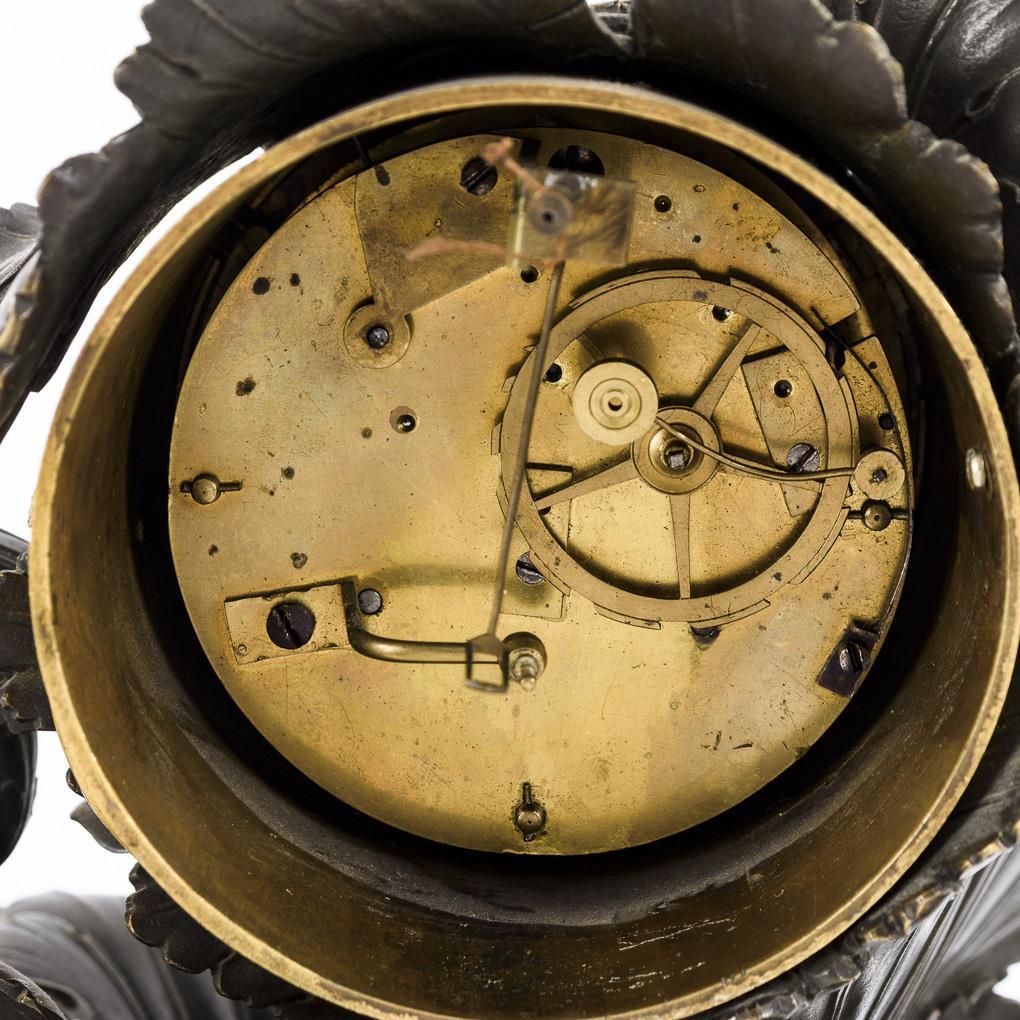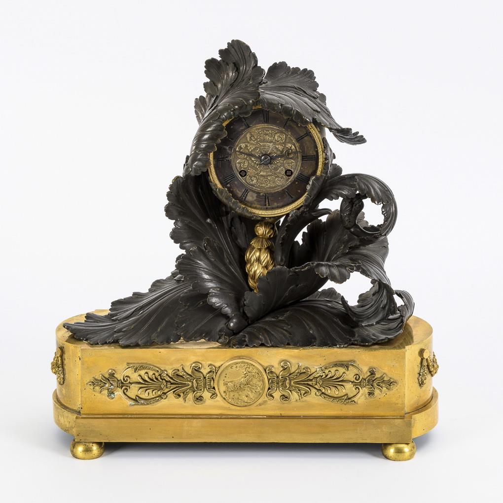 Bronze-Pendule mit Blattwerk.