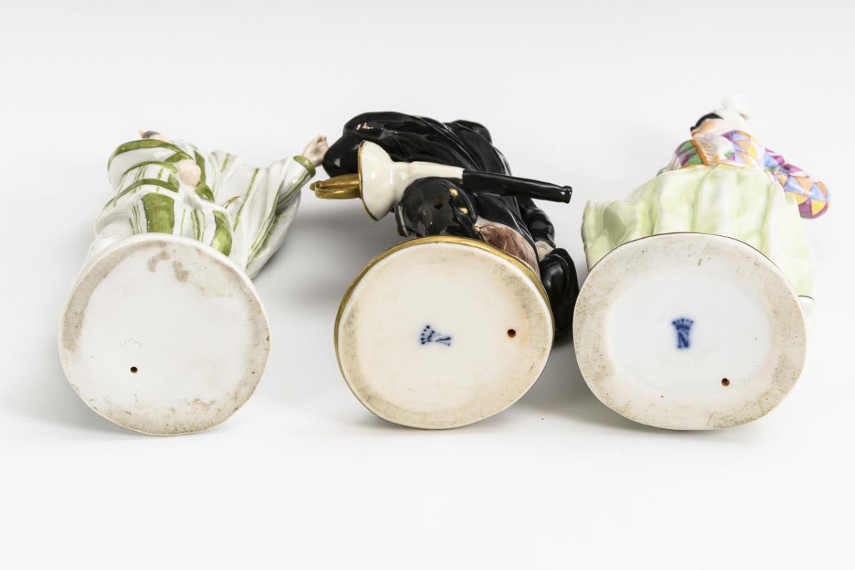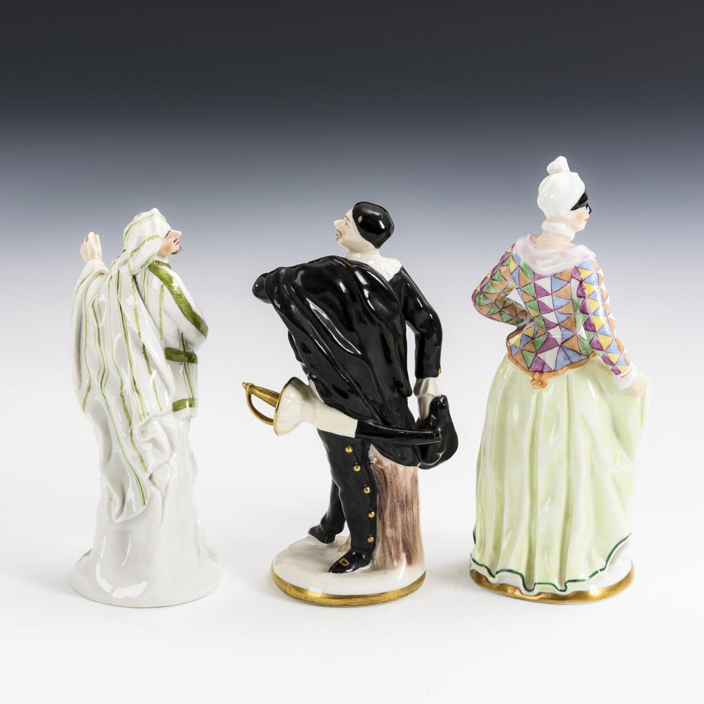Figur des Dottore, der Arlecchina und des Arlecchino.