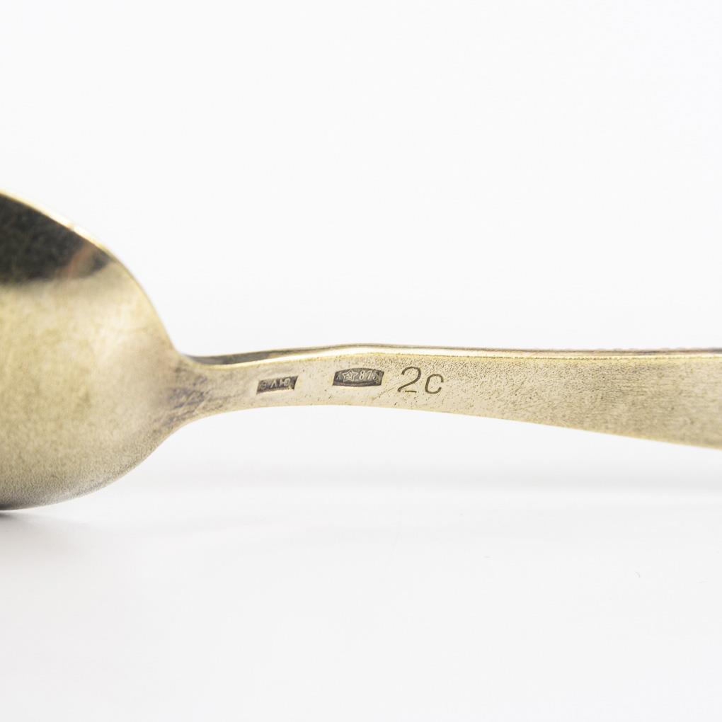 6 russische Silberlöffel mit emaillierten Griffen, im Etui.