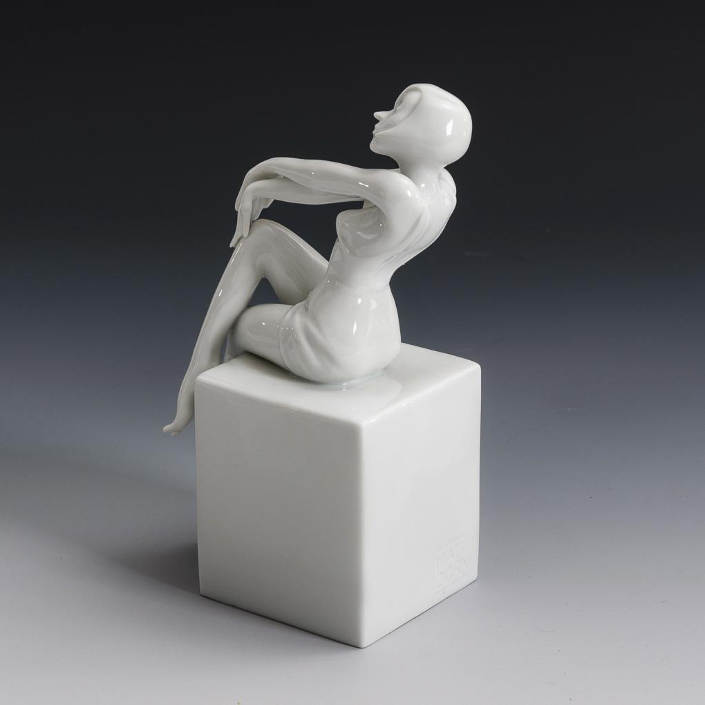 Aus der Serie "Eros". Auf einem Quader sitzende, leicht bekleidete junge Dame.