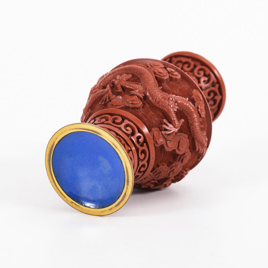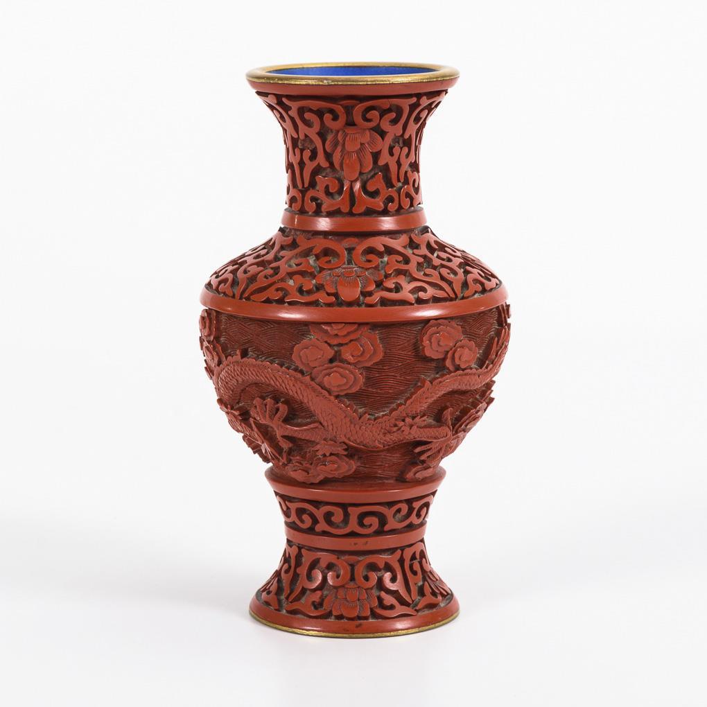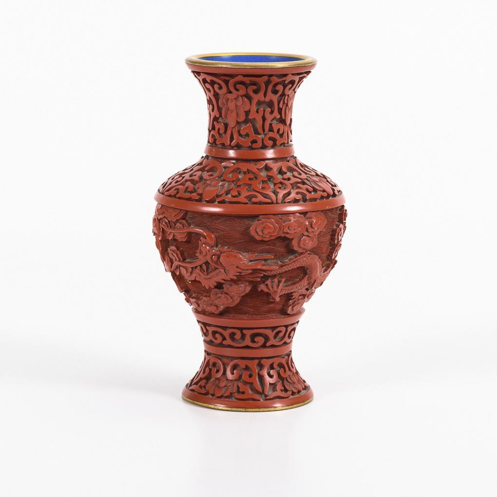 Kleine Balustervase mit reliefiertem Drachendekor.