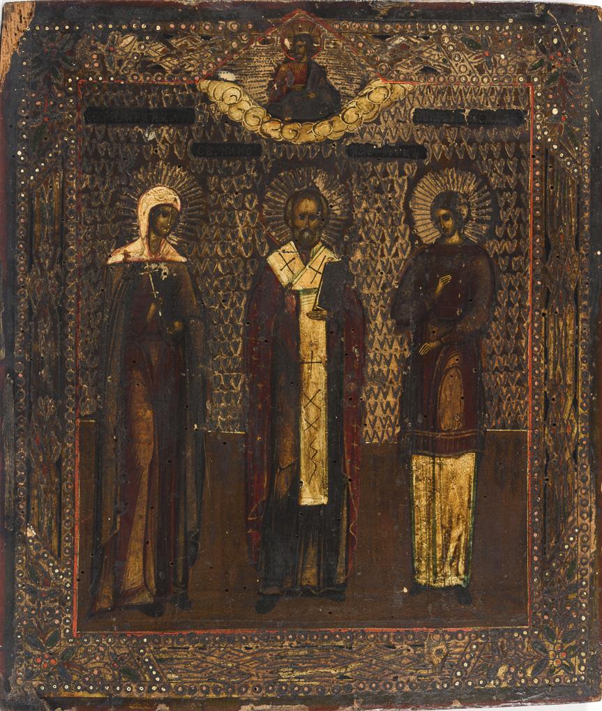 Drei Ikonen mit Jesus und Heiligen