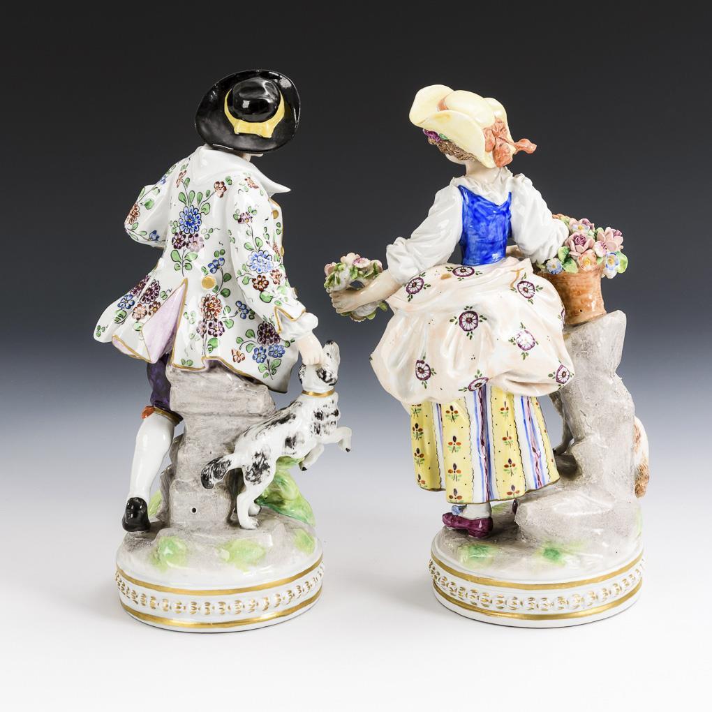 Schäferin mit Blütenkorb, Blütenkranz und Schaf. / Schäfer mit Flöte und Hund. 1 Blüte bestoßen.